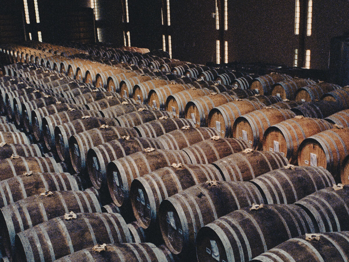 Following distillation, the eau-de-vie typically has an alcohol content of around 52% ABV and is filled into French oak casks at this strength. Bottling generally takes place at an alcohol level between 40% and 48% ABV. Successful maturation depends on achieving a balance between the influence of the oak and the intrinsic character of the spirit. New barrels primarily provide color and tannins, while more delicate aromas and complex nuances develop later through oxidative aging in older casks. Traditional practice in Gascony emphasizes the importance of well-seasoned oak. A local saying suggests that Armagnac should mature in wood that has long been exposed to natural weathering. During the preparatory phase known as lessivage, undesirable compounds are gradually leached from the wood, reducing the risk of excessive bitterness in the spirit. For this reason, barrel staves are commonly stored outdoors prior to cooperage, with optimal results typically achieved using wood that has been weathered for at least 24 months. Local oak (Quercus pedunculata), characterized by a relatively wide grain structure, plays an important role in maturation; when subjected to medium to heavy toasting, it contributes significantly to both color development and tannin structure. The characteristics of the aging cellars (chais) also strongly influence the evolution of Armagnac. Humidity levels are particularly important: in humid cellars, alcohol evaporates more rapidly, resulting in a softer and rounder spirit. In drier environments, water evaporates more quickly, leading to a more concentrated brandy with a higher alcohol strength.